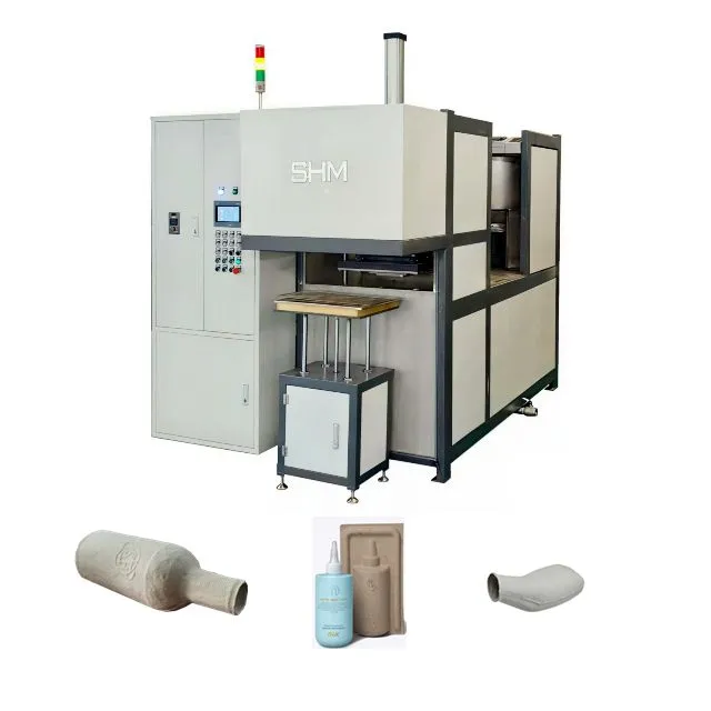 La máquina formadora automática de botellas de pulpa moldeada serie SHW está diseñada para aplicaciones de envasado de fibra de alta precisión. Apoya la pulpa virgen, el papel reciclado, el bagazo de caña de azúcar y otras fibras sustentables. Con una personalización flexible del molde y una tecnología optimizada de conformado/prensado en caliente, permite la producción en masa de botellas, frascos, insertos y envases para cosméticos o de cuidado personal de pulpa rígida moldeada.